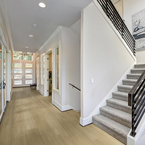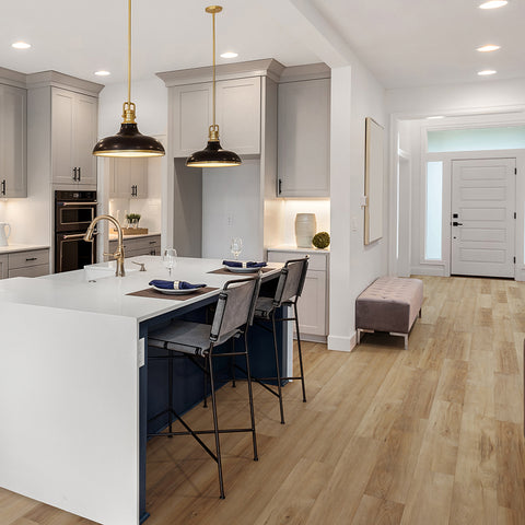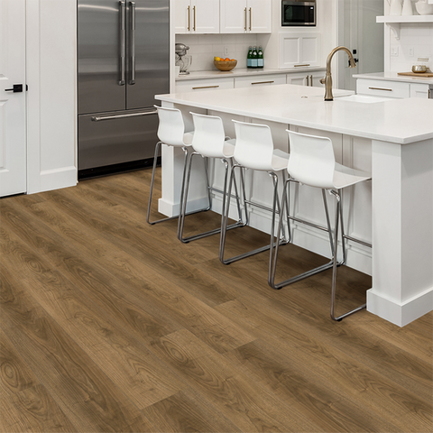 Our hybrid flooring with stone composite core technology allows for the beautiful appearance and feel of wide plank hardwood floors in environments where wood would traditionally not perform well.